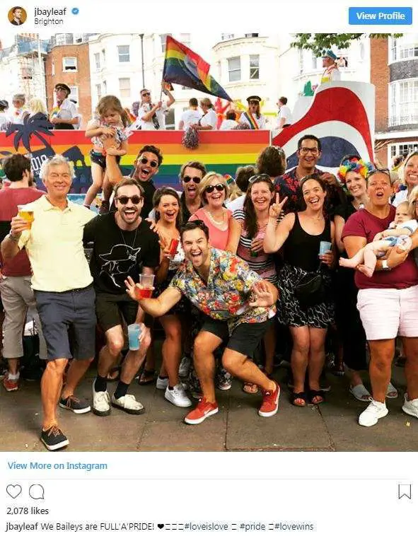 Gay Power: Jonathan posts a picture with his whole family during the event of Pride Month on 6 August 2018 (Photo: Jonathan Bailey’s Instagram)