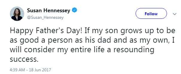 Wants Son To Be Like Her Husband!: Susan Hennesey wants her don to grow as his father and her own- father's Day Tweet (Photo: Susan Hennesey's Twitter- 18 June 2017)