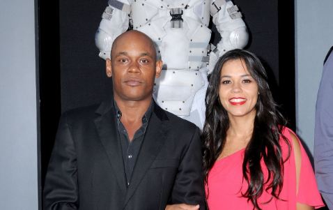 Bokeem Woodbine attends the Los Angeles Premiere of 'Total Recall' with wife Mahiely Woodbine in 2012Â