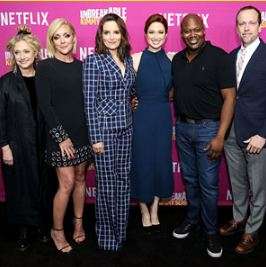 Carol Kane with Tina Fey, Tituss Burgess, Jane Krakowski, Robert Carlock, and Elle Kemper and other stars during an event for Unbreakable Kimmy Schmidt in 2018 (Photo: justjaredjr.com)