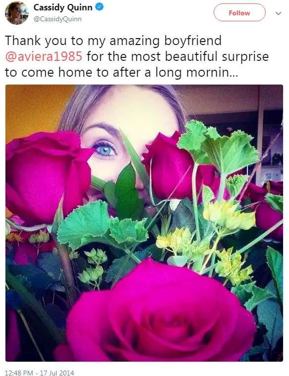 Though there are no any pictures to solidify their relationship, Cassidy frequently mentions him as a boyfriend in her Twitter. In July 2014, she tweeted a photo with flowers thanking her boyfriend Alfredo for the most beautiful surprise to come home after the long morning.