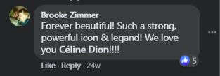 A fan appreciating Céline Dion on Facebook (Source: Céline's Facebook)