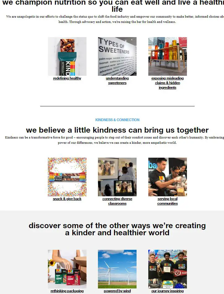 A closer look into the brand's mission page also trumpets the social theme. There, the brand has adequately explained how a consumer could make a better decision understanding the type of sweeteners used and harmful ingredients. Even more, the brand is looking to run its operation by wind energy by the end of 2020.