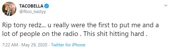 Many artists, including Famous Rapper Nico Nasty, shared condolences and commented about Tony's contribution to their respective careers following his death.