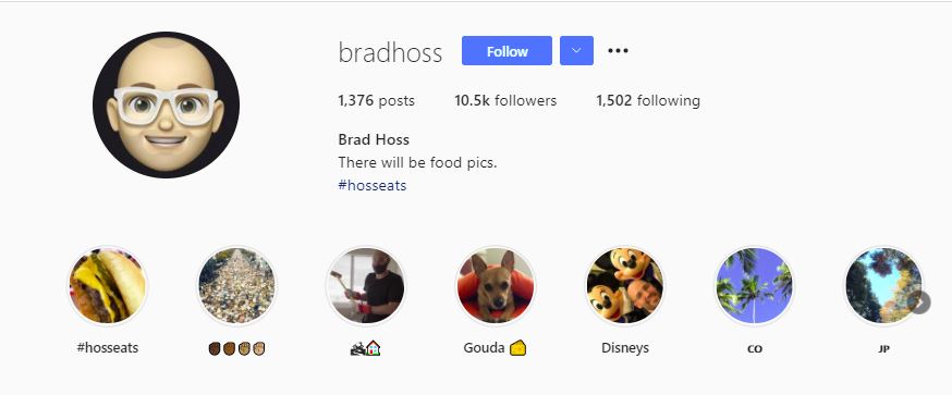 Hoss also has a dedicated hashtag #hosseats and has over 200 pictures of food, mostly of sandwiches, salads, and pizza, on his account.