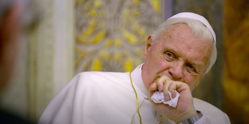 Hopkins portrayed Pope Benedict XVI in this biographical drama alongside Jonathan Pryce as Cardinal Jorge Mario Bergoglio.