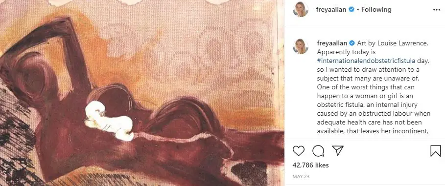 Freya Allan shares social awareness on Obstetric Fistula through her Instagram in May 2019 (Photo: Freya Allan's Instagram)