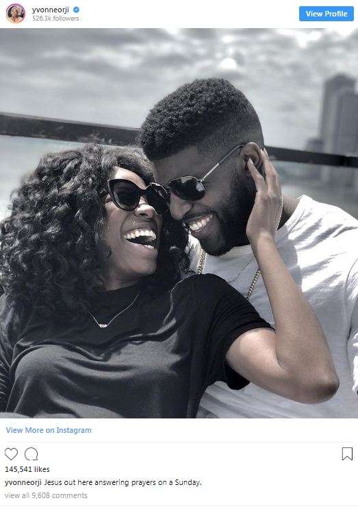 The Right One: Yvonne posts a picture introducing her boyfriend, Emmanuel on Instagram on 21 May 2018 (Photo: Yvonne Orji’s Instagram)