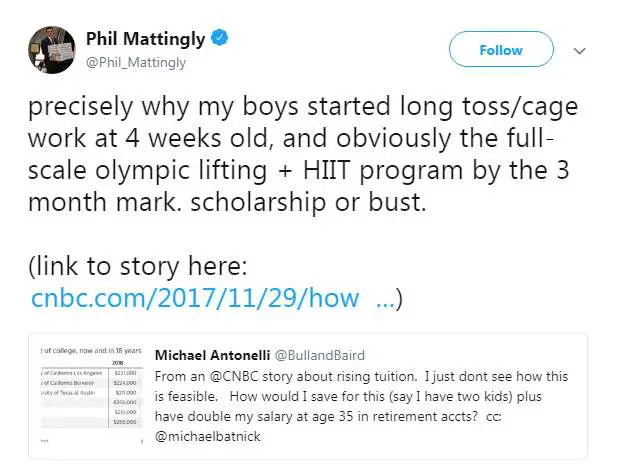 Concerned Father: Phil Mattingly tweets about his concerns regarding rocketing educational expenses- 17 May 2018. (Photo: Phil Mattingly's Twitter)