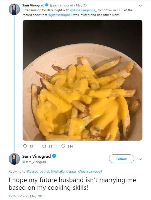 No Wedding Plans: Incoming Samantha mentions her future husband on Twitter while talking about how she doesn’t wish for her partner to marry her based on her cooking skills on 25 May 2018 (Photo: Samantha Vinograd’s Twitter)
