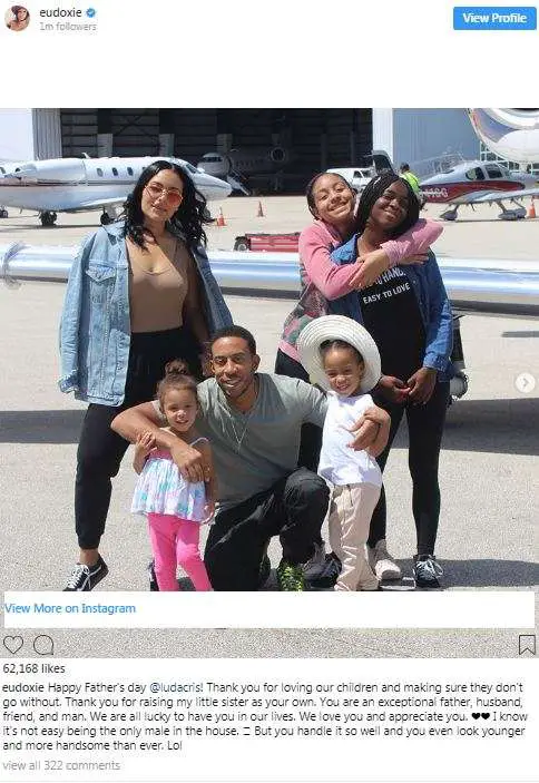 Blissful Family:Â Eudoxie (R) wishes father's day to Ludacris (C) crediting him for handling fatherhood ever so well (Photo: Eudoxie's Instagram)Â