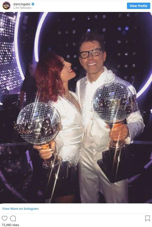 More Than Just Rumored Girlfriend?: Bobby and his dance partner Sharna Burgess post for a picture as they hold their Mirrorball Trophies (Photo: Dancing with the Stars’ Instagram | 20 November 2018)
