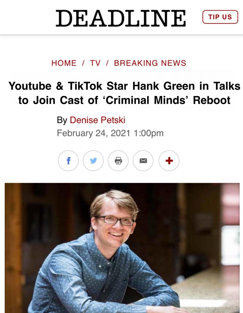 Deadline's deleted article about Hank Green Joining Criminal Minds. (Source: Reddit)