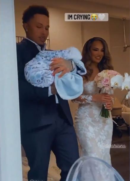 Juju And Des with their baby boy, Kai, on their wedding day. (Photo: Julius Brown's Instagram)