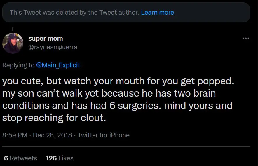 The exact reason is unconfirmed, but in 2017, Bangz's girlfriend, who goes by "raynesmguerra" on Twitter, responded to a tweet that has been deleted saying that their kid had two brain conditions and had undergone six surgeries.