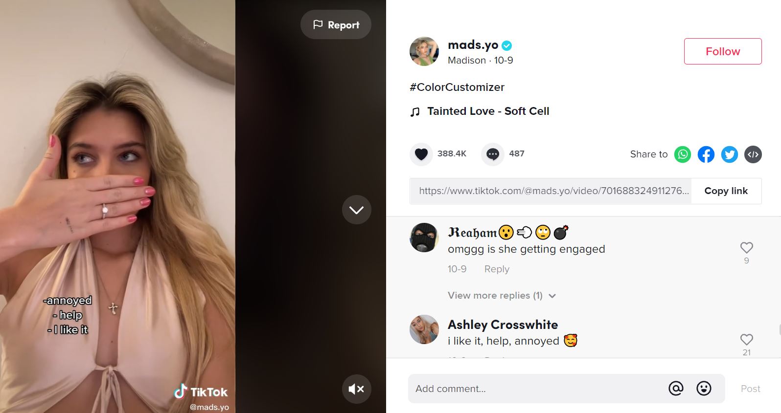 Mads Lewis TikTok And Engagement Comments (Source: Mads Lewis TikTok)