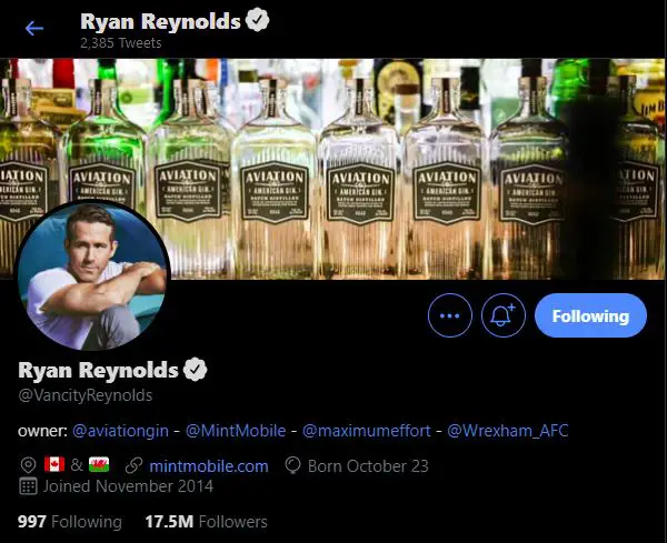 Ryan Reynolds’ Twitter bio. (Source: Twitter)