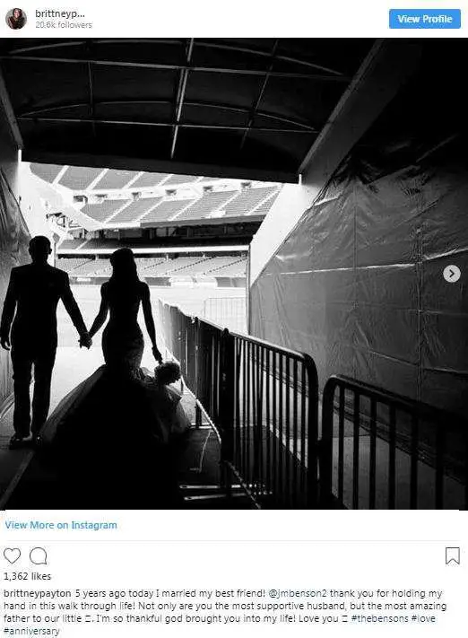 Happy Anniversary: Brittney Payton celebrated her 5th wedding anniversary with husband Jorden Benson on 27 July 2018Â (Photo: Brittney Payton's Instagram)