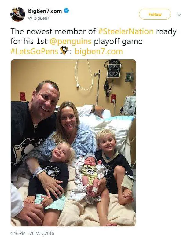 Family In A Frame: Ashley Harlan and Ben Roethlisberger welcomed thier third child in 2016. (Photo: Ben Roethlisberger's Twitter)