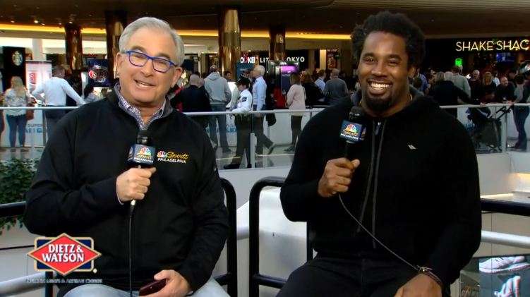 Advice For NFL Lovers: Dhani Jones joins CNBC reporter Michael Barkann on NBC Sports Philadelphia to talk about the keys for beating the NFL team, New England Patriots in February 2018 (Photo: Nbcsports.com)
