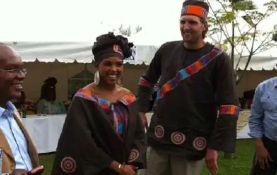 Traditional Kenyan Wedding: Jessica Olsson & Dirk Nowitzki wearing traditional dresses during their wedding (Photo: theundefeated.com)